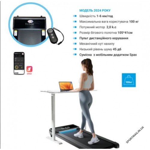 | Особенности: | - Есть дистанционное управление с помощью пульта - Использование высококачественного антистатического, удобного и нескользящего бегового полотна сделает ходьбу более безопасной и комфортной - Дорожка обладает меньшим эффектом вибрации, меньшим шумом и более длительным сроком службы, чем обычные беговые дорожки - Понятный дисплей находится на панели двигателя, где вы можете просматривать информацию о скорости, дистанции, времени и шагах - Наличие переключения режимов информации на LED дисплее - Совместима с мобильным приложением Spax |