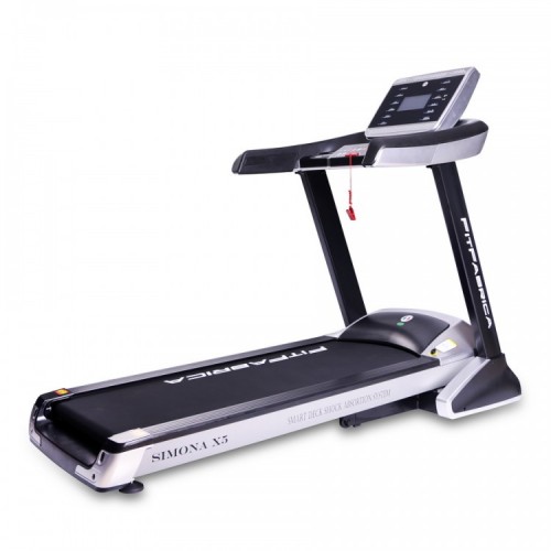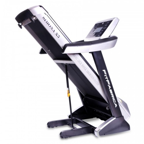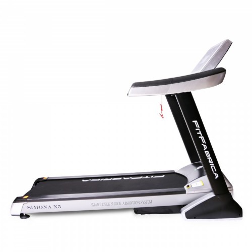 Беговая дорожка FitFabrica Simona X5 отличается прочной стальной рамой и усиленной декой, что максимально приближает эту дорожку к профессиональным моделям. Двигатель мощностью 4 л/с позволяет развивать скорость до 18 км/ч и сохраняет при этом низкий уровень шума благодаря системе “Power Tech”. Данная модель оснащена очень мягкой системой амортизации, состоящей из 12 специальных эластомеров “Extra Safety Run Absorbing System”, дополненных системой «Run Damping Control».