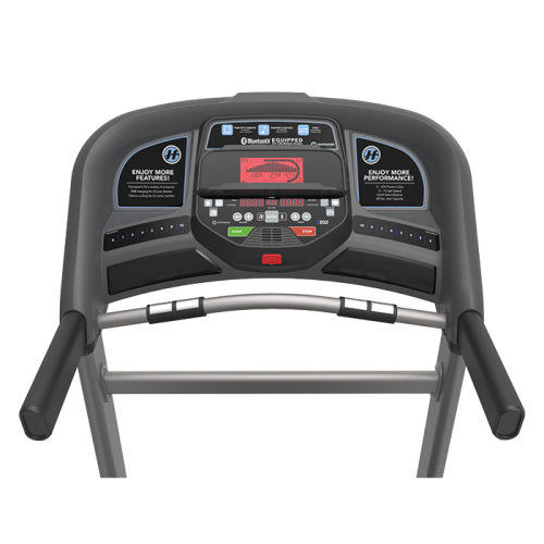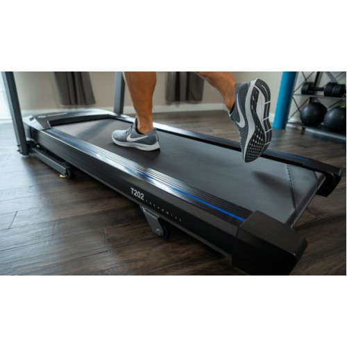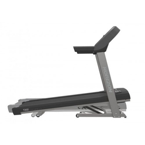 Беговая дорожка Horizon T202 имеет трёхзонную амортизацию, что снижает нагрузку на суставы. Консоль данной модели имеет совместимость с Bluetooth, что позволяет подключать устройство к консоли и динамикам, а так же имеет стойку что позволяет удобно разместить ваш гаджет. Вы можете получить доступ к нескольким популярным фитнес-приложениям и сохранить свой прогресс на своем устройстве. В консоли установлено пять встроенных программ, которые включают в себе снижение веса и кардио-режимов (калории, время) с возможностью ручных и интервальных тренировок. Встроенный вентилятор сохраняет прохладу во время очень сложных тренировок.
