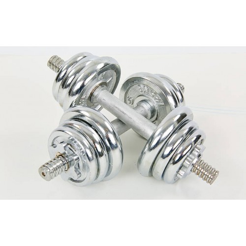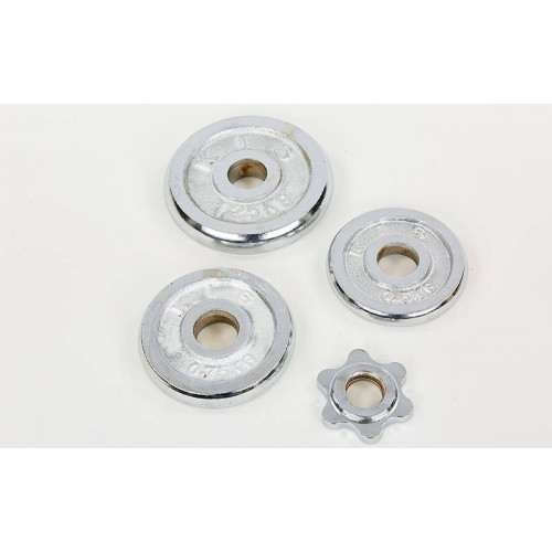 Гантели изготовлены из высококачественной хромированной стали и имеют стильный, эстетически привлекательный дизайн. Комплект включает в себя два грифа, два замка и набор весовых блинов. Для обеспечения максимального комфорта и безопасности тренировок на центральную часть грифов (область захвата) нанесены насечки, что предотвращает скольжение ладони. В то же время звездообразные замки (гайки Вейдера) позволяют быстро собрать/разобрать гантели и обеспечивают надёжную фиксацию блинов – они не болтаются и тем более не могут упасть.
