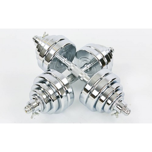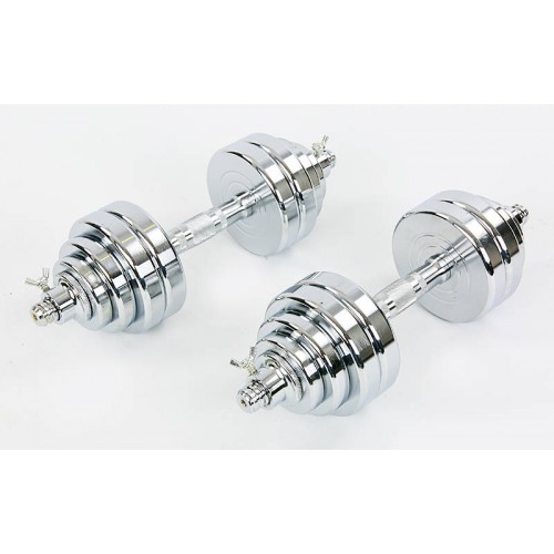 Гантели разборные (2шт) хром. фикс. диск с резьбой Вес: 30 кг 2 грифа l-40см Блины (2,5+2,5+1,5)х4