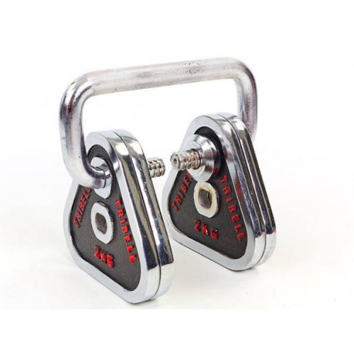 В новых, мультифункциональных гантелях кроме стандартных треугольных дисков и грифов предусмотрен еще один новый (инновационный) овальный гриф, с помощью которого гантели можно использовать как штангу, либо же надеть все диски на один гриф и увеличить нагрузку.