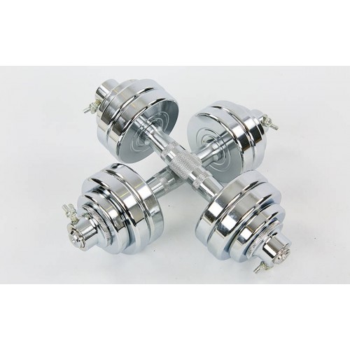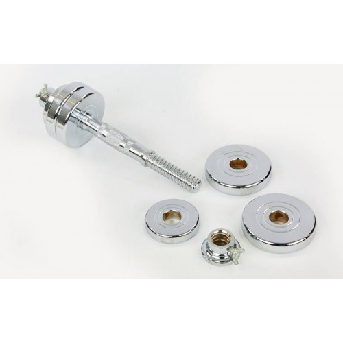 Каждая гантель состоит из грифа, набора дисков и замков – все элементы изготовлены из высококачественной хромированной стали. На рукоять грифа нанесены мелкие ромбовидные насечки, что предотвращает скольжение ладони и обеспечивает надёжный хват. Замок представляет собой фиксирующий диск с резьбой и стопорным винтом, что обеспечивает надёжное закрепление весовых блинов на грифе и, соответственно, безопасность тренировок. Благодаря высокотехнологичному производству вес гантелей соответствует заявленному и не имеет погрешностей.