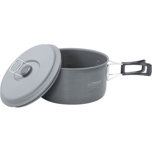 Котелок туристический с крышкой. Котелок упакован в удобный сетчатый чехол.