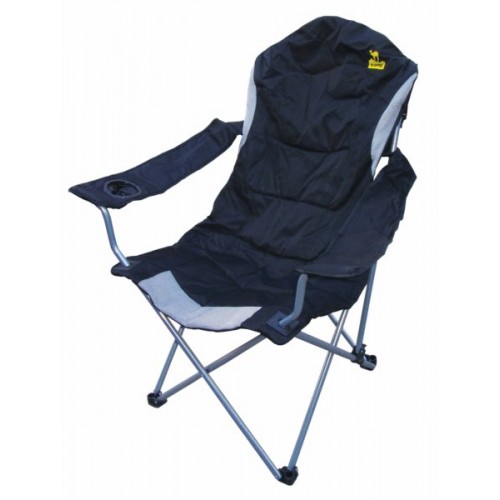 Комфортабельное кресло с подлокотниками. Спинка кресла имеет 3-х позиционный механизм регулировки. Каркас выполнен из прочной стальной трубки. В ручке кресла есть подстаканник. Кресло упаковано в матерчатый чехол.