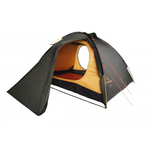 Двухместная туристическая палатка. 2 входа, 2 вместительных тамбура. Тент из прочной армированной ткани, все швы на тенте и на полу проклеены. Противомоскитные сетки, отличная вентиляция, наверху в тенте имеются 2 вентиляционных окна. Каркас: 2 дуги + консоль, в комплекте - ветровые оттяжки. Благодаря наружному каркасу, палатка устанавливается легко и быстро, за считанные минуты, кроме того, при установке под дождем, спальня остается сухой. Можно установить только тент, без внутренней палатки. 4 внутренних кармана, в комплекте - подвесная полочка из сетчатого материала.