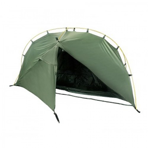 Одноместная туристическая палатка. Очень легкая и компактная двухслойная палатка с превосходной вентиляцией. Тент из прочной армированной ткани, все швы на тенте и на полу проклеены. Складной наружный каркас на шарнирах с фиксацией. Благодаря наружному каркасу, палатка устанавливается легко и быстро, кроме того, при установке под дождем, спальня остается сухой. Материал спальни - сетка, возможна установка тента без спальни. 1 вход, 1 тамбур. Отлично подходит для сольных велопутешествий.