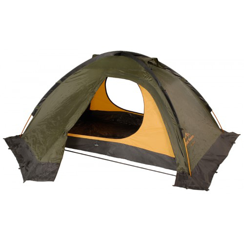Легкая всесезонная 3-х местная двухслойная туристическая палатка со снежной юбкой, которая крепится к почве при помощи находящихся в комплекте дополнительных шпилек и защищает внутреннюю палатку от снега и ветра. Когда юбка не нужна, её можно подвязать к тенту. Тент из прочной армированной ткани, наверху в тенте имеются 2 вентиляционных окна. Каркас - 2 дуги. Герметичные швы, вентиляция, дышащий материал спальни, противомоскитные сетки, возможна установка тента без спальни.Благодаря наружному каркасу, палатка устанавливается легко и быстро, за считанные минуты, кроме того, при установке под дождем, спальня остается сухой. 2 входа, 2 тамбура. Внутри - 4 кармана, в комплекте имеется полочка из сеточки, которая подвешивается под потолком. Палатка VEIG PRO II достаточно легкая, ее можно использовать в качестве штурмовой альпинистской палатки во время восхождений.