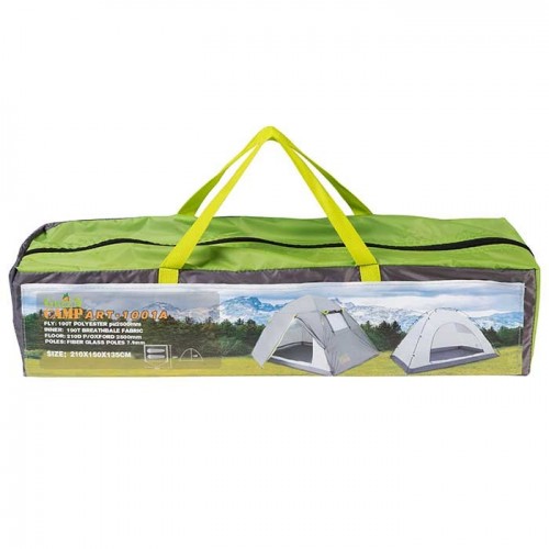 Простая и быстрая сборка и разборка. Компактный удобный тамбур для вещей. Защищенный от непогоды вход с защитной сеткой. Все швы проклеены. Вентиляционный клапан. Идеально подойдет для непродолжительных походов.