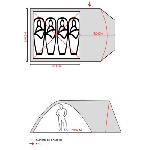 Внутренняя палатка: 190T Breathbale Fabric