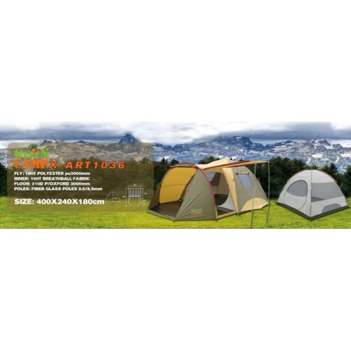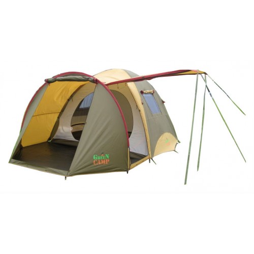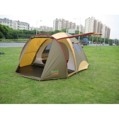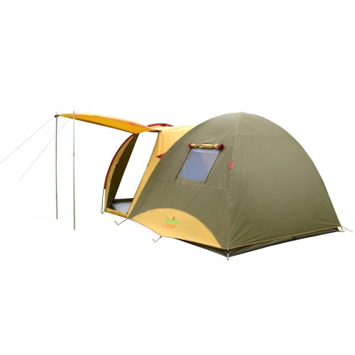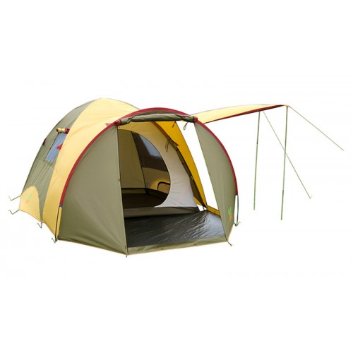 Двухслойная четырехместная палатка с большим тамбуром и двумя входами, простая и быстрая установка, москитная сетка на входе. Все швы проклеены. В комплекте сумка-чехол.