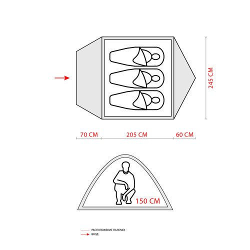 Внутренняя палатка: 190T Breathbale Fabric.