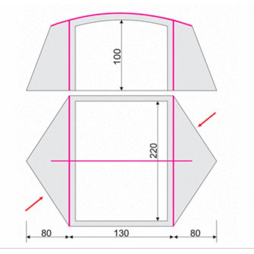 Устойчивая конструкция их трёх наружных дуг позволяет устанавливать тент без спального помещения, а также обеспечивает простую и быструю сборку и разборку всей палатки.