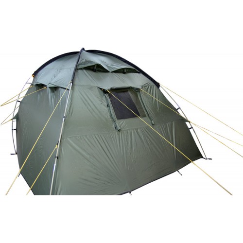 При необходимости спальное помещение можно разделить быстросъемной перегородкой. Для большего уюта и комфорта можно пристегнуть дополнительный пол в тамбур (входит в комплект). Конструкция позволяет использовать тент без спального помещения как столовую, склад или базовую палатку.