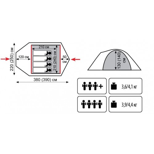 Тент: 100% полиестер 75D/190T WR PU 4000 мм. в. ст.