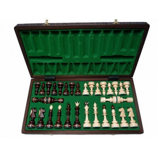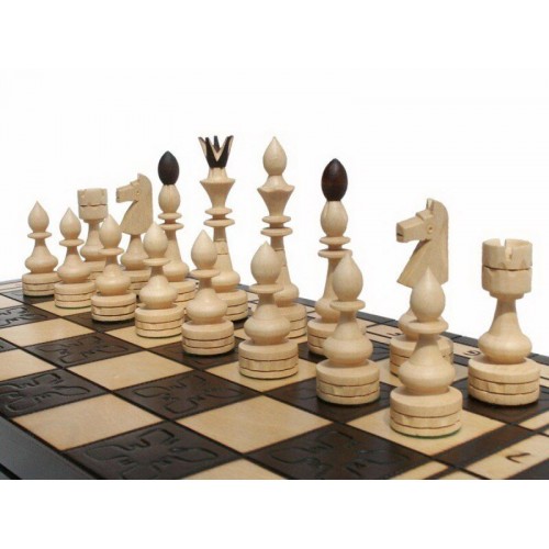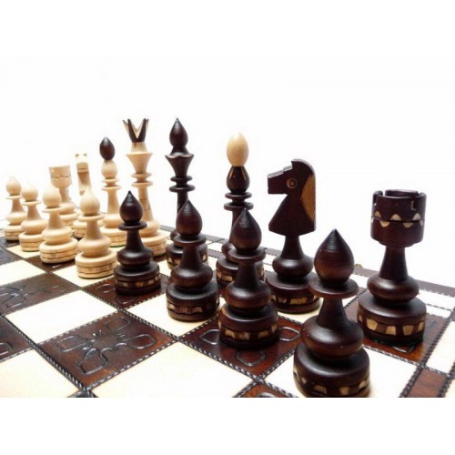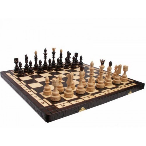 Фигуры шахмат «Индийские» отличаться изящностью и аккуратностью исполнения, для изготовления используется натуральное дерево, сочетание темных и светлых тонов смотрится очень красиво. Доска размер, которой 50 на 50 позволит хорошо оценивать ситуацию на поле боя. Поверхность доски разделена на клетки с помощью линий, которые наносятся выжиганием. Кроме этого темные клетки и торцы доски украшены выжженными узорами. Своеобразные фигуры идеально сочетаются с доской, фигуры довольно высокие, король – самая высокая фигура имеет высоту 12 см. Шахматы индийские смотрятся великолепно и позволят взглянуть на сражение совершенно с другой стороны. Данные шахматы станут прекрасным подарком, и без разницы по какому поводу. Шахматы всегда будут лучшим подарком.