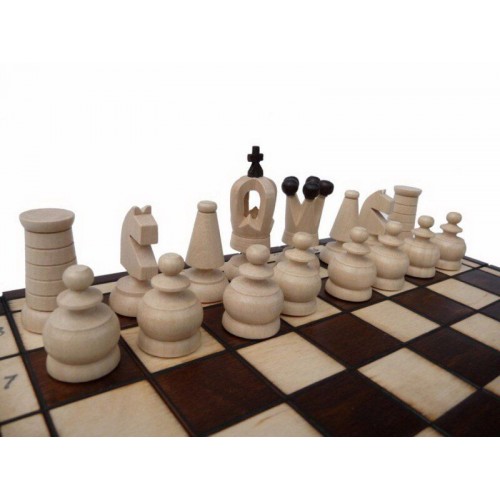 Эксклюзивный шахматный набор, представленный ведущим польским производителем шахмат Madon. станет оригинальным подарком для начинающего ребенка или собственного использования. Компактные размеры, которые при разложении формируют игровую доску размером 27х27 см, поможет создать уютные условия для проведения интеллектуальной борьбы у дома или на свежем воздухе. Игровые фигуры и доска, изготавливаются из натурального дерева. с элементами выжигания и ручной резьбы, подчеркнут особый вкус своего владельца, и станут замечательным элементом декора вашего дома. Шахматы такого типа всегда будут пользоватся спросом.