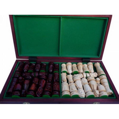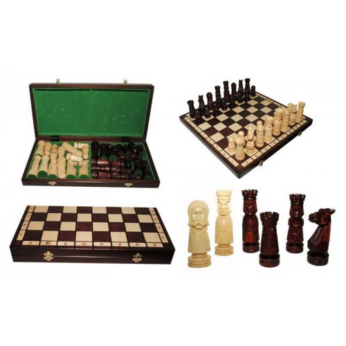 Шахматы Замковые малые привлекают строгостью и одновременно красотой резных фигур, работа выполнена польскими мастерами фабрики Madon с особой тщательностью. Клетки доски отделены друг от друга при помощи выжженных линий и выглядит это очень красиво, края доски слегка закруглены. К сведению: доска в разложенном виде имеет размер 50 х 50 см, высота короля: 120 мм – есть где разогнаться и оценить правильно ситуацию во время игры. Отличный выбор для подарка в любое время года. Такие шахматы используют для игры и иногда как элемент декора для дополнения интерьера. В любом случае, Вы ни на минуту не будете сожалеть о потраченных деньгах.