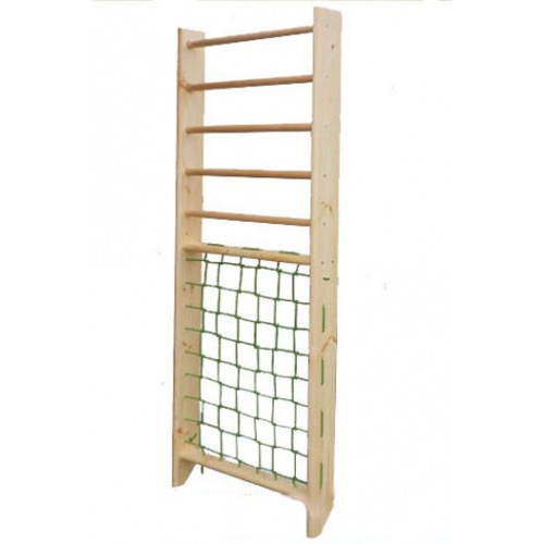 Шведская стенка "Растишка" сочетает в себе самые необходимые элементы для развития ребенка – шведскую стенку и гладиаторскую сетку, имеет надежное крепление к стене, занимает минимум места в детской комнате и имеет вполне приемлемую цену. В более раннем возрасте излюбленным элементом ребенка, конечно же, будет гладиаторская сетка, подрастая, он по достоинству оценит и наличие шведской стенки.
