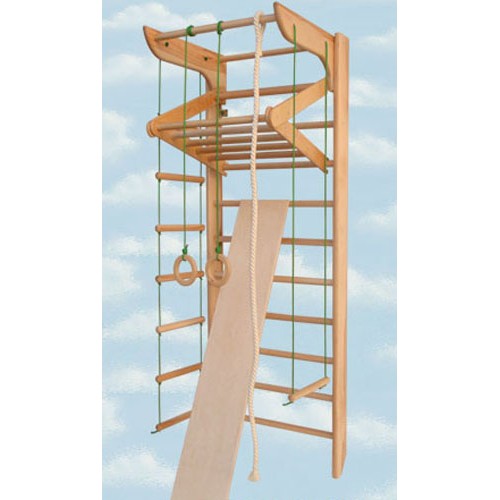 Деревянный спорткомплекс на основе шведской лестницы можно установить как у себя в квартире, так и на даче, в загородном доме или в детском дошкольном учреждении – везде такой спорткомплекс будет незаменим. Но устанавливая спорткомплекс необходимо всегда помнить о безопасности вашего малыша и не забыть приобрести гимнастический мат, который убережет юного спортсмена от ушибов.