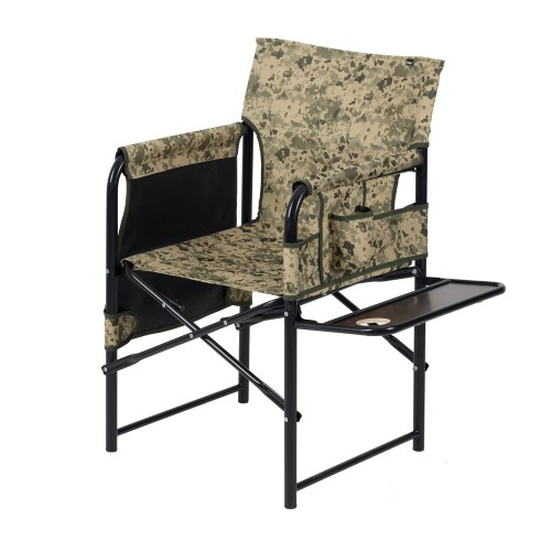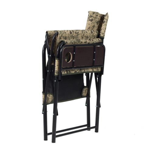Надёжный стул для рыбалки и отдыха с устойчивой влагостойкой полкой. В конструкии стула, помимо полки предусмотрены вместительные карманы.