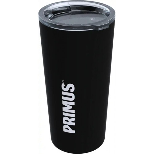 Термокружка PRIMUS Vacuum Tumbler Black 0.6L - новинка на рынке термокружек от PRIMUS. Имеет форму высокого стакана или бокала, но по содержанию полноценный термос. Представляет собой вакуумную колбу выполненную из высококачественной нержавеющей стали 18/8, с внешней стороны имеет полированную поверхность или окрашен порошковой краской. Имеет прозрачную пластиковую крышку с силикогновым уплотнителем вдоль окружности и отверстием для питья. Крышка предназначена для сохранения температуры напитка, но не обеспечивает герметичности кружки.