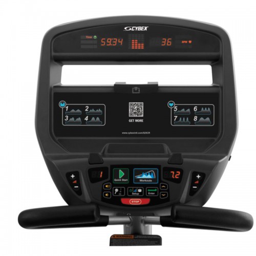 Показания консоли:калории, оборотов в минуту, калории в час и частоту сердечных сокращений, включая мультицветной индикатор сердцабиения; нижний дисплей показывает скрость и уровень сопротивления;